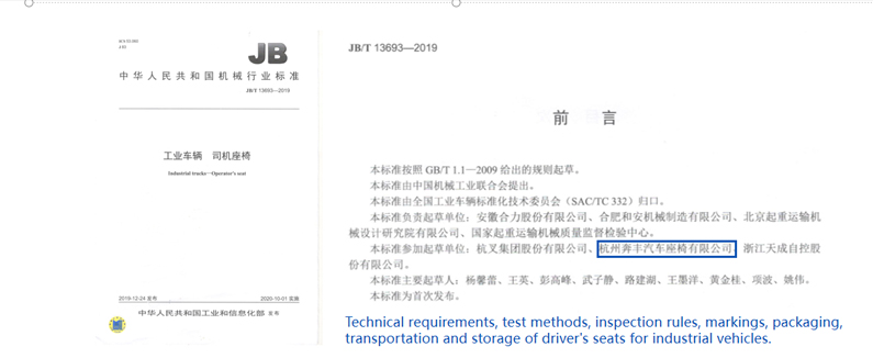 (Tekniske krav, prøvningsmetoder, inspektionsregler, mærkninger, emballering, transport og opbevaring af førersæder til industrikøretøjer.)